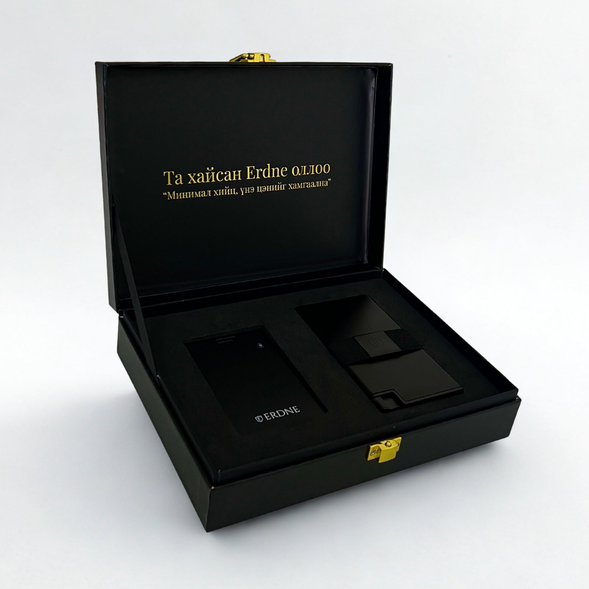Энэ бол зүгээр нэг хэтэвч биш юм. Ухаалаг шийдэлтэй, минимал хийцтэй мөртлөө олон үйлдэлтэй. Жижигхэн хэрнээ таны өдөр тутмын хэрэгцээг бүрэн хангана. Картаа, мөнгөө, бичиг баримтаа, жижиг хэрэгслээ хаана ч авч явахад төгс зохицно. Загварлаг, чанартай, удаан эдэлгээтэй тул таны амьдралд тав тух, өвөрмөц өнгө, үнэ цэнэ нэмж өгнө. Мөн erdne байршил тогтоогч картыг нэмснээр алдаж, гээх асуудлаас бүрэн хамгаална. Erdne карт нь apple болон android утастай холбогддог ба 6 сар цэнэгээ хадгалдаг. Мөн дахин боловсруулсан материалаар хийсэн, усны хамгаалалттай бүтээгдэхүүн юм.